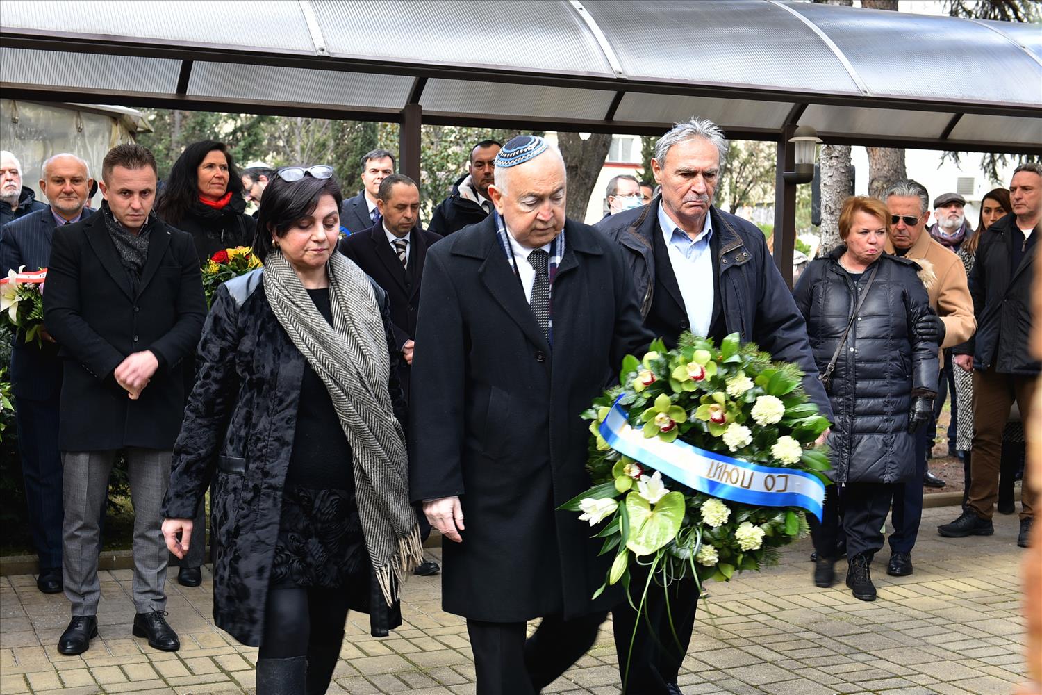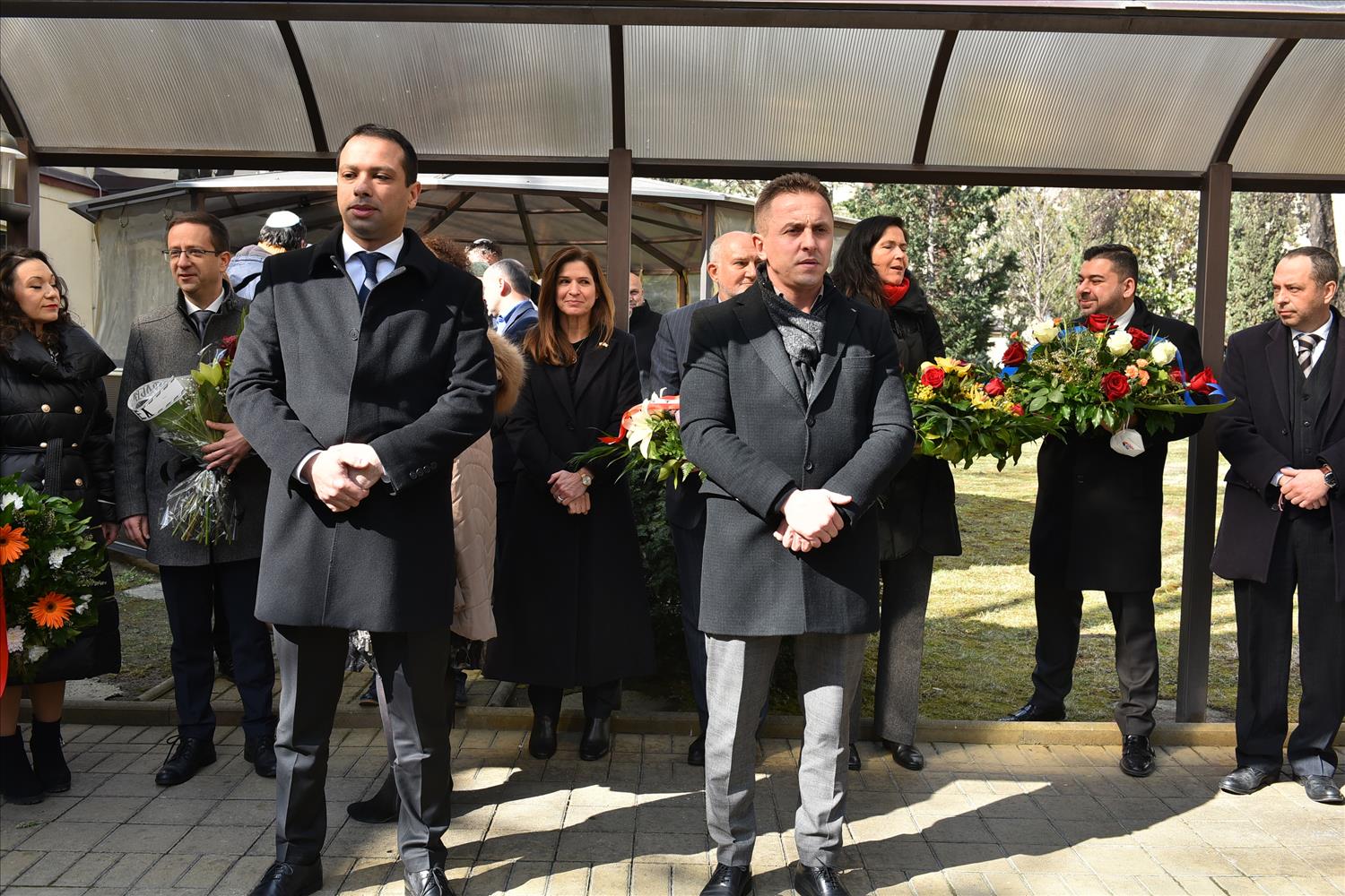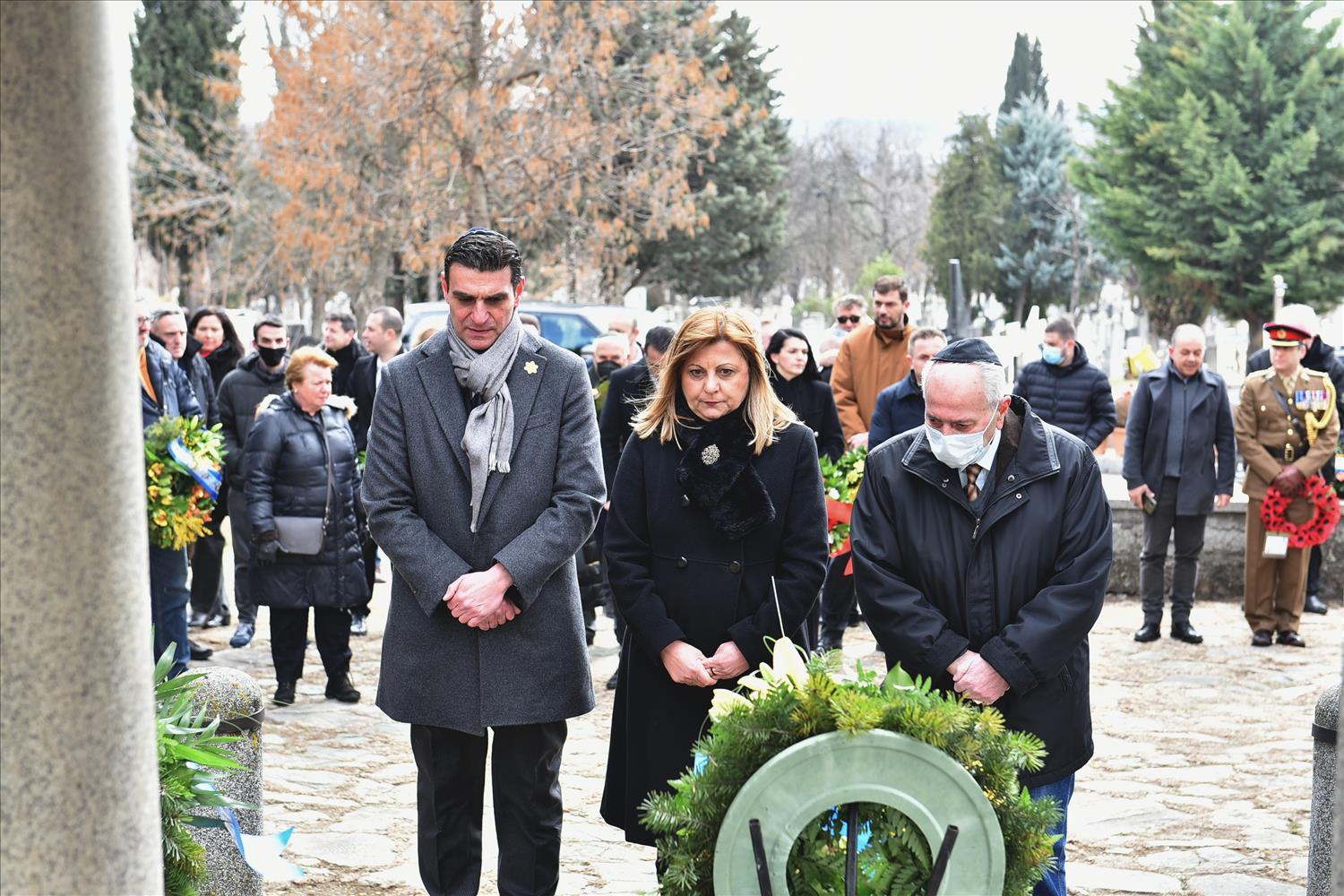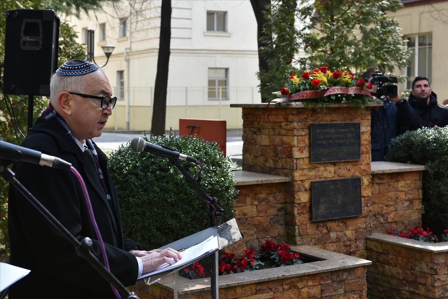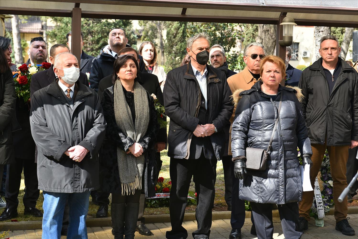 Делегации од Еврејската заедница, претставници на Владата, дипломатскиот кор, невладиниот сектор, пријатели на заедницата и граѓани положија цвеќе пред Споменикот на депортираните македонски Евреи во некогашниот скопски Монопол, кој бил привремен транзитен логор.