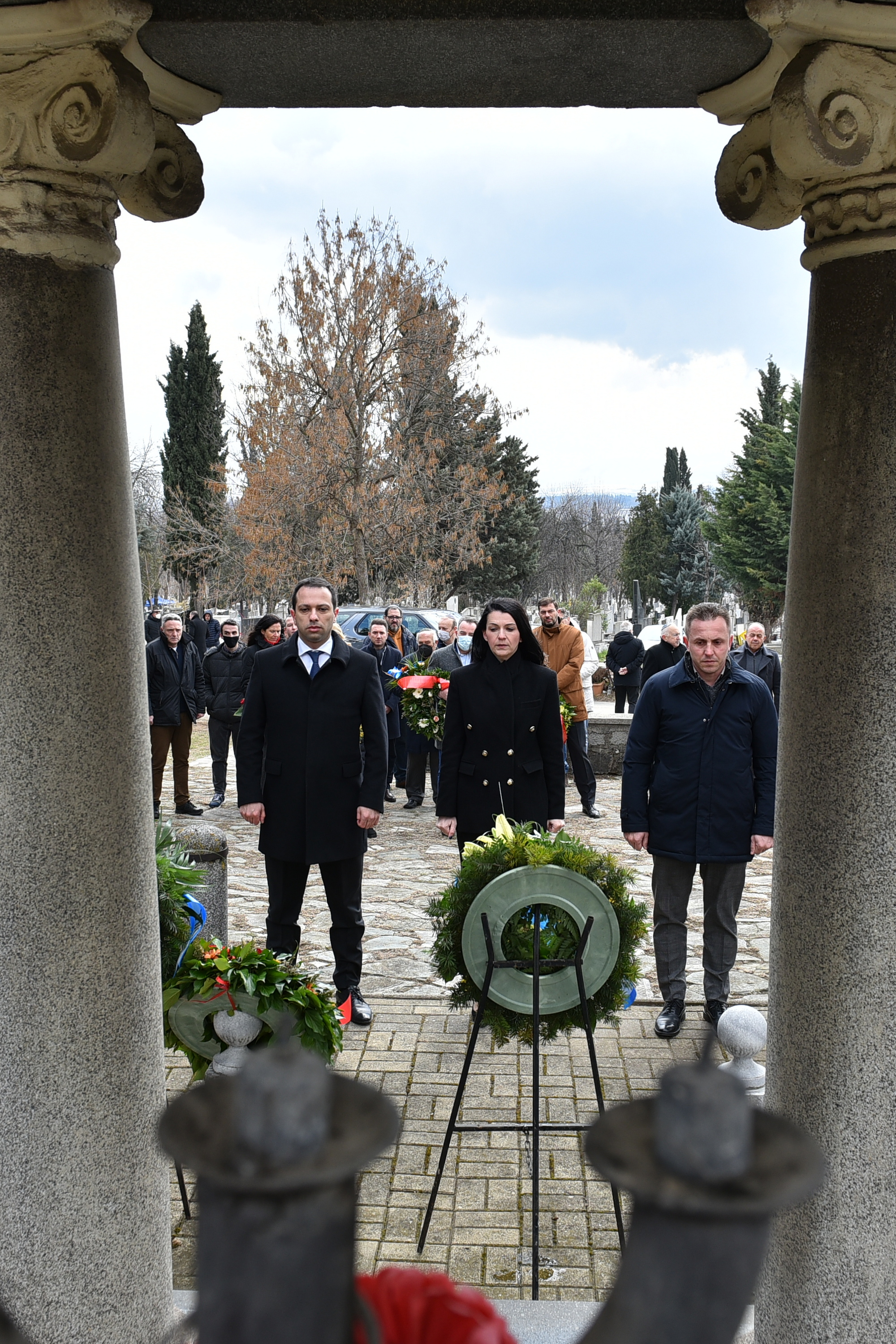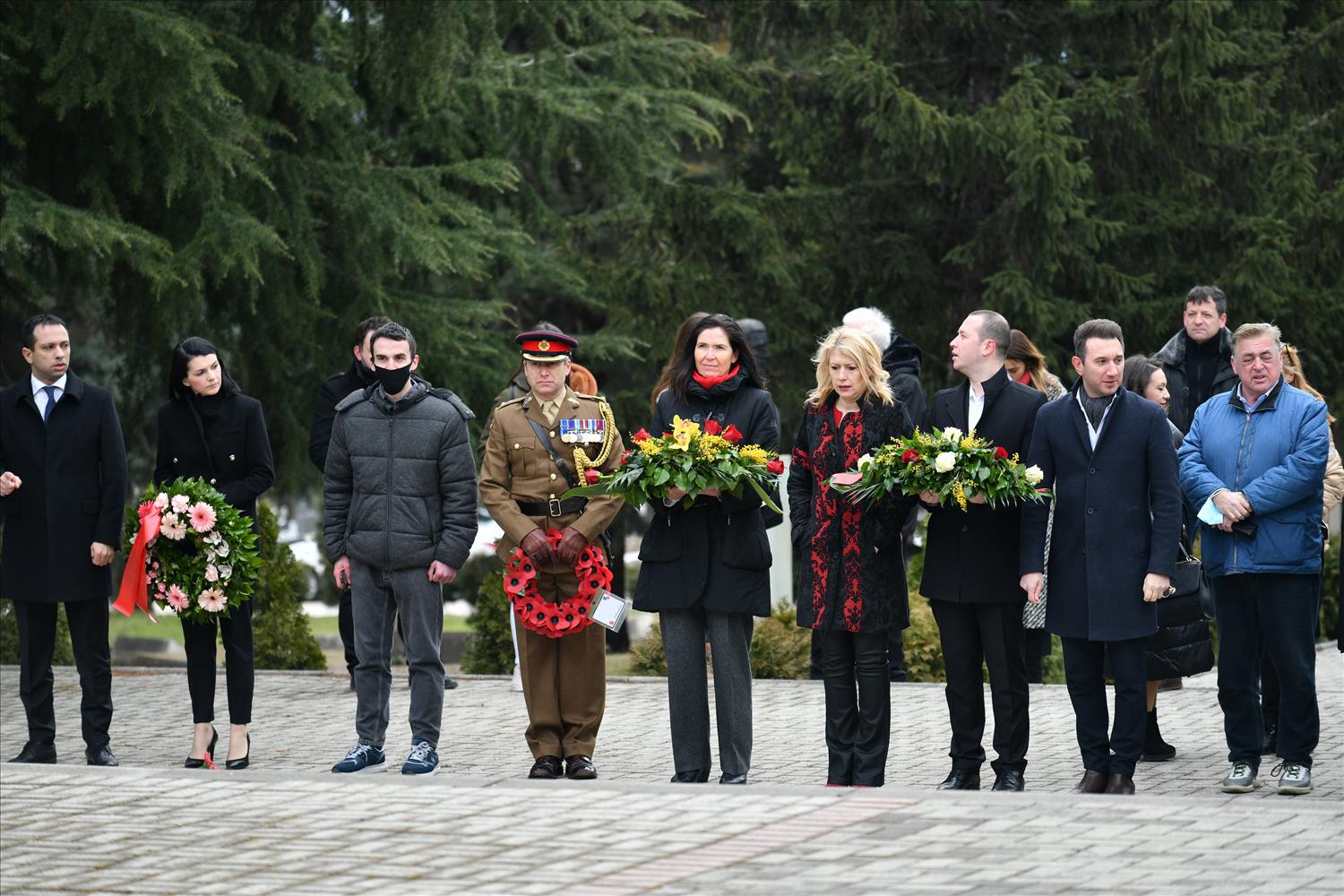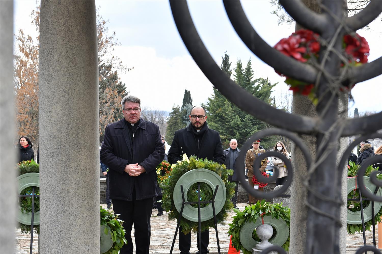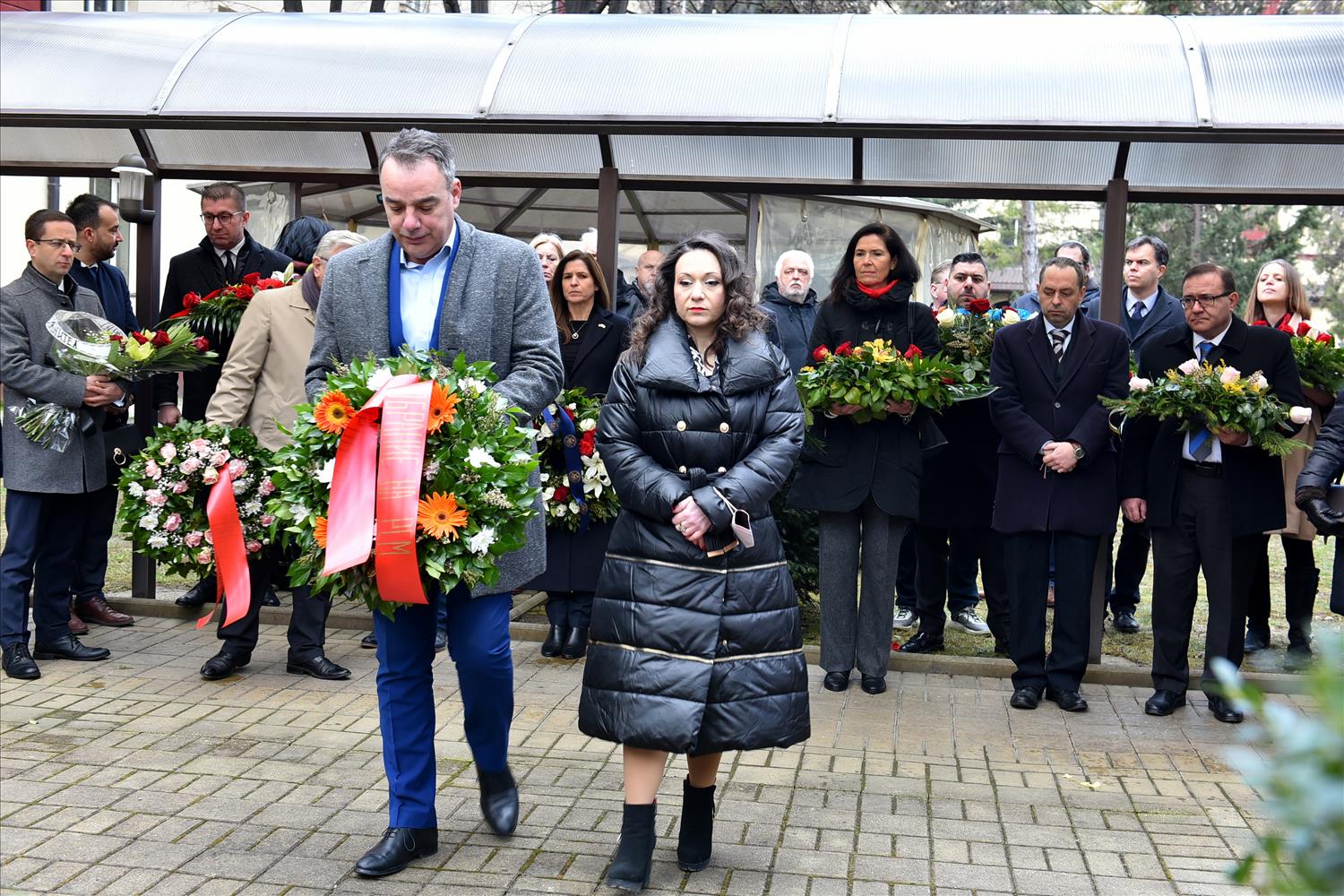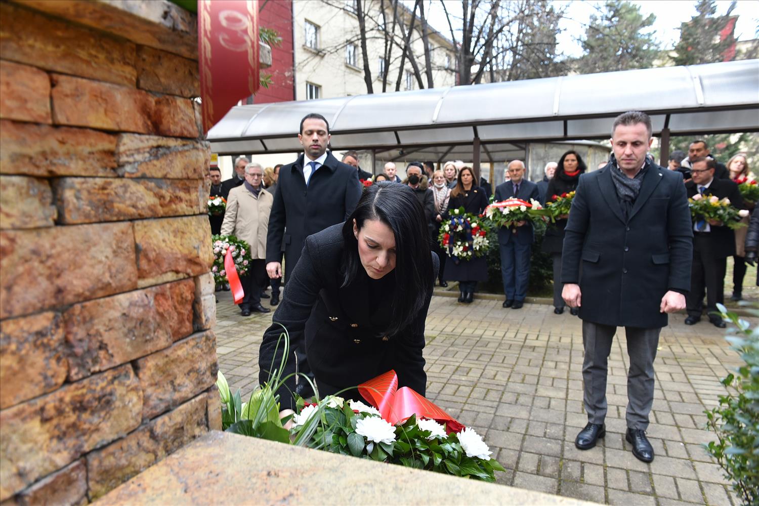 Делегации од Еврејската заедница, претставници на Владата, дипломатскиот кор, невладиниот сектор, пријатели на заедницата и граѓани положија цвеќе пред Споменикот на депортираните македонски Евреи во некогашниот скопски Монопол, кој бил привремен транзитен логор.