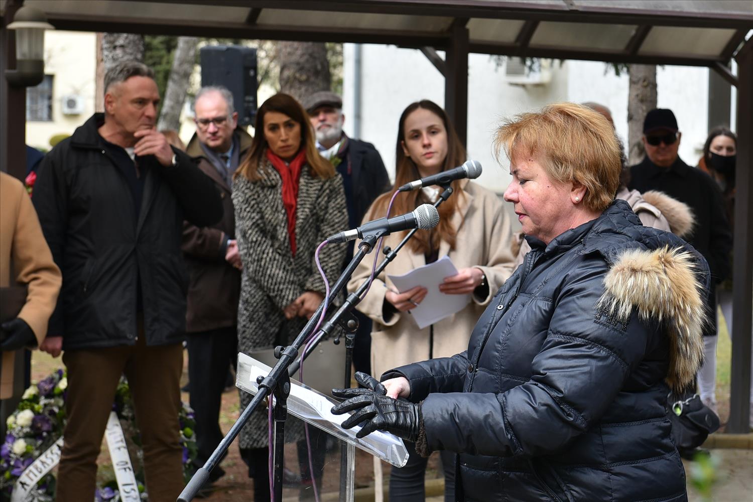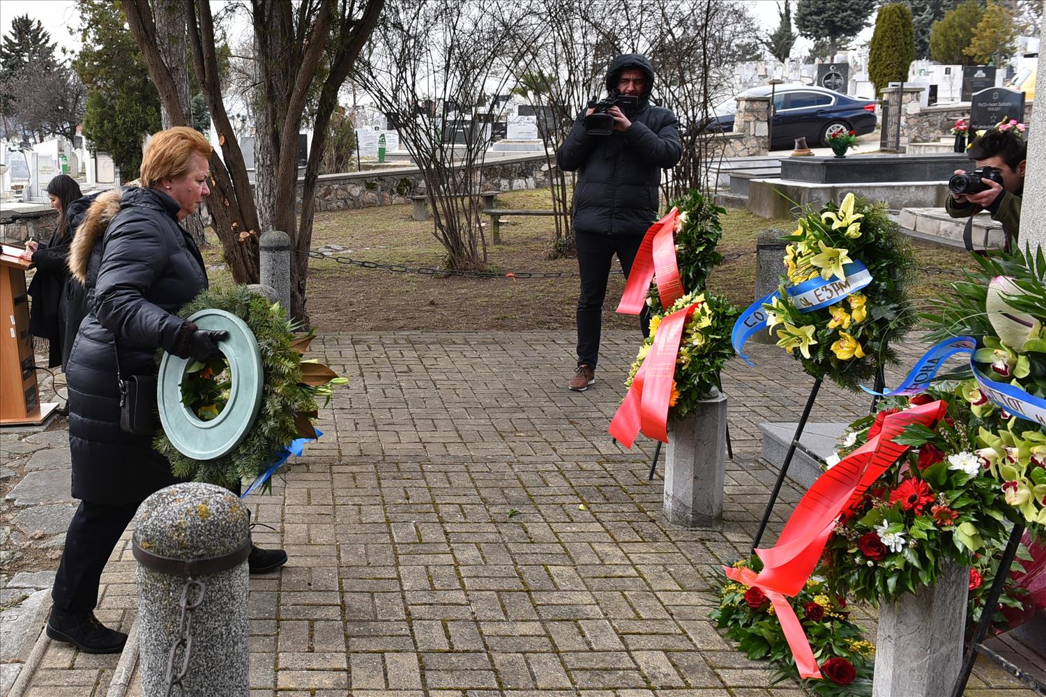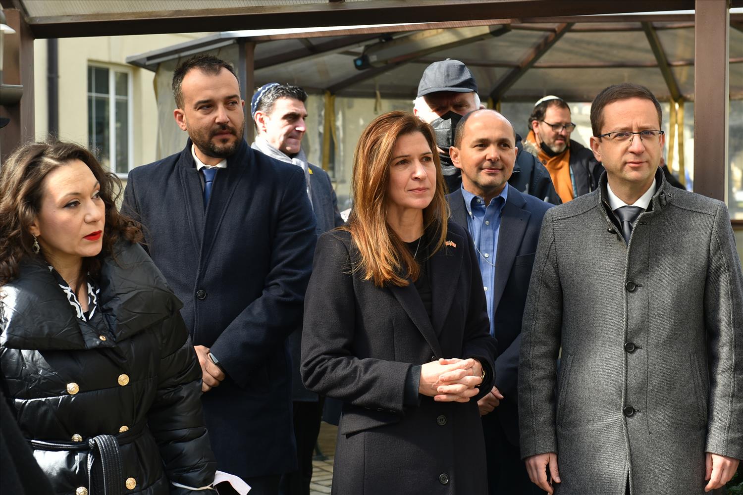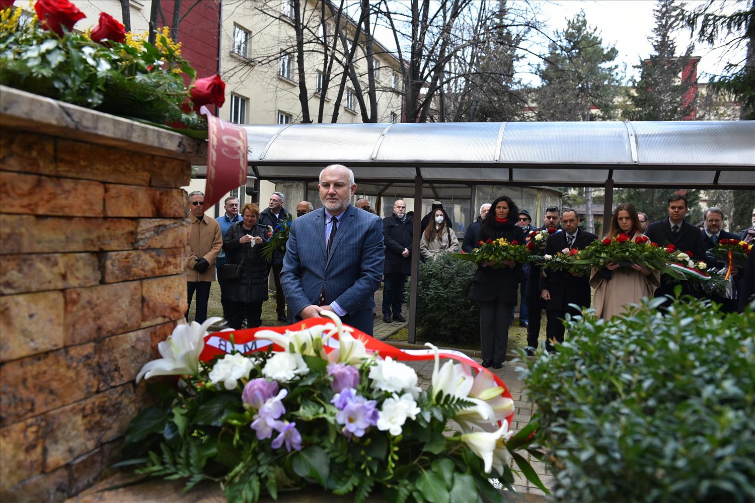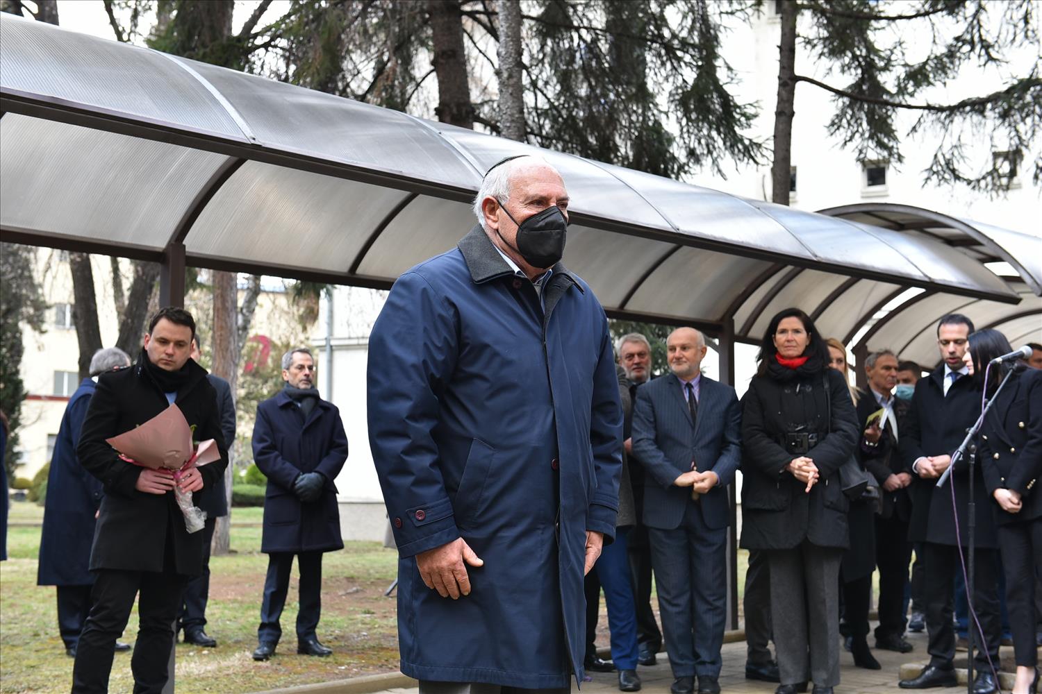 Делегации од Еврејската заедница, претставници на Владата, дипломатскиот кор, невладиниот сектор, пријатели на заедницата и граѓани положија цвеќе пред Споменикот на депортираните македонски Евреи во некогашниот скопски Монопол, кој бил привремен транзитен логор.