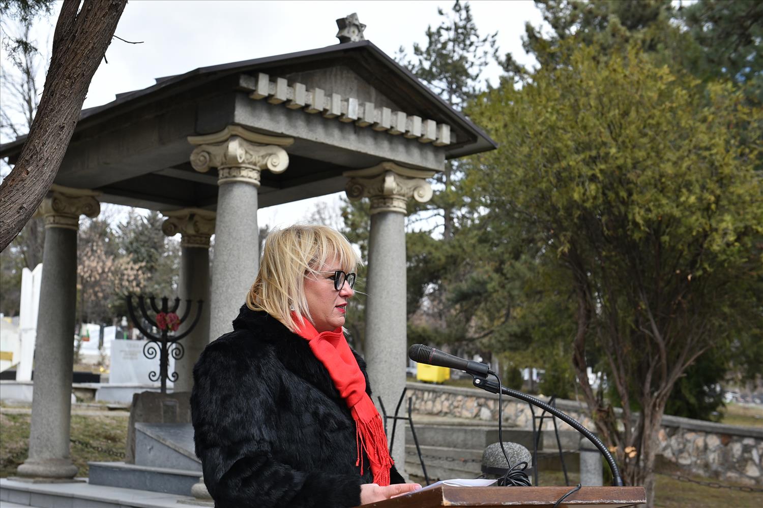 Амбасадорката на Израел, Симона Франкел, и претседателот на Еврејската заедница, Пепо Леви, изразија благодарност до градоначалничката Арсовска за почитта што секоја година Град Скопје му ја оддава на еврејскиот народ одбележувајќи го овој датум за да се запамети и никогаш да не се заборави.