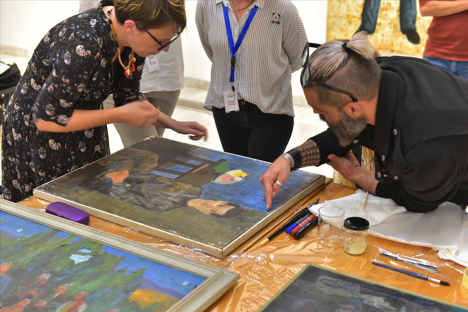 Вториот ден од Меморијалниот центар семинарот продолжи во Национална галерија на Македонија каде се разгледуваа и дијагностицираа уметнички слики оштетени од разни фактори. Искутвата и досегашната работа на конзерваторите се споделуваа и се предлагаа техники за санација на штетите.