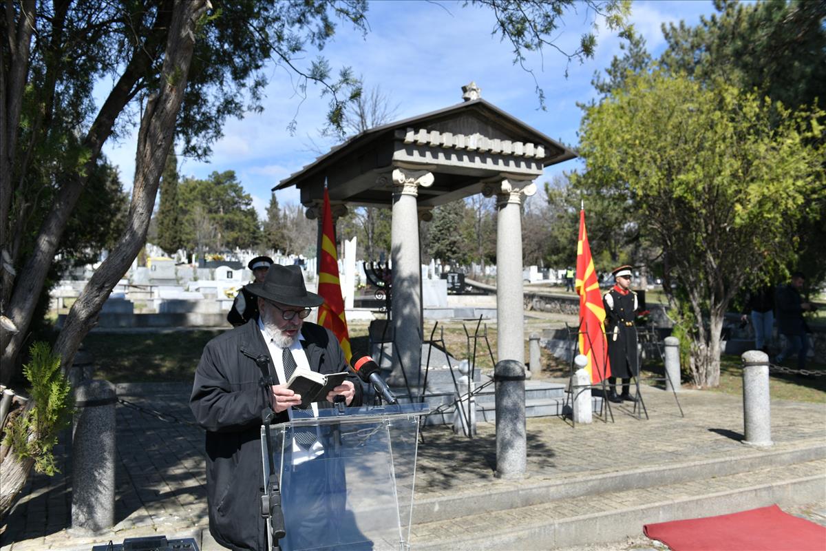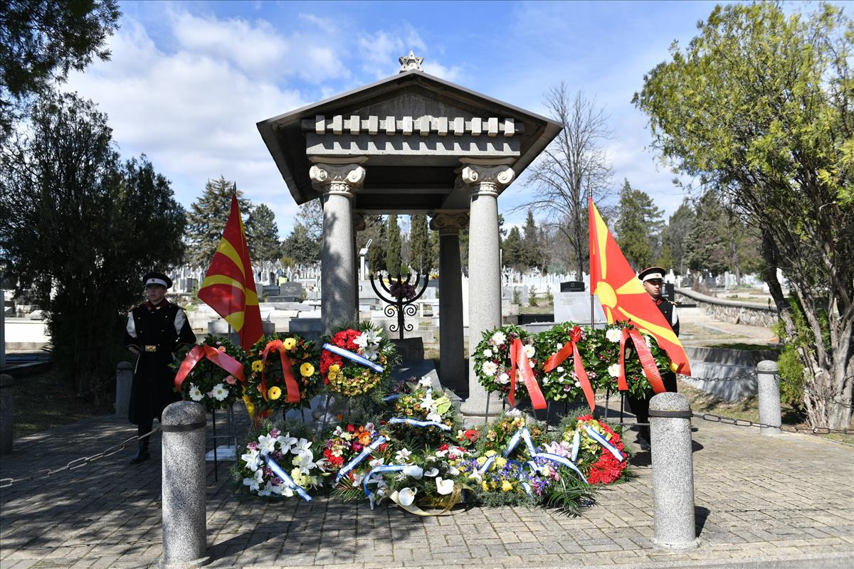 Со КАДИШ (молитва), и со полагање венци на спомен обележјето во некогашниот Монопол во Скопје им се оддаде почит на жртвите, а делегациите положија цвеќе и на еврејските и партизанските гробишта во Бутел.