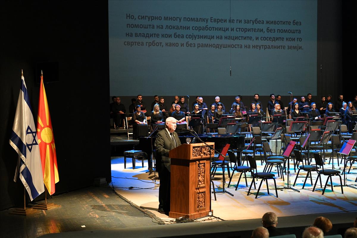 Во рамките на одбележувањето, во Националната опера и балет се држа комеморативен концерт. Свое обраќање во НОБ имаа премиерот Димитар Ковачевски, амбасадорката на Израел, Симона Франкел, претседателот на Еврејската заедница Пепо Леви и претседавачот на Американскиот еврејски конгрес, рабин Ендру Бејкер.